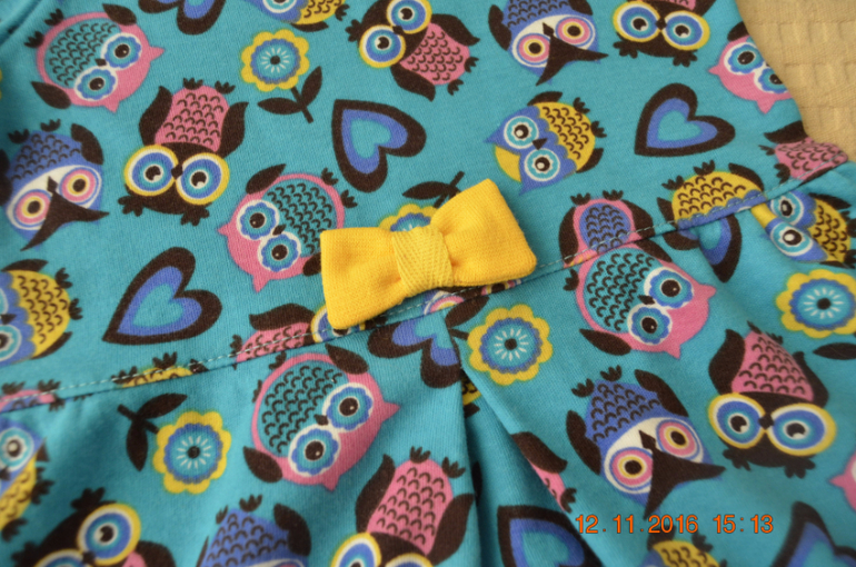 Перед платья украшен бантиком из рибаны желтой