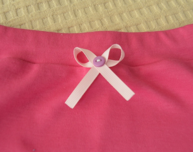 У штанов сделала манжеты из интерлока, на поясе бантик из репсовой ленты, чтобы легче было определить перед.