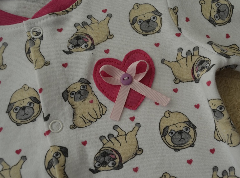 Полочку кофточки уркасила аппликацией сердечко с бантиком из репсовой ленты.