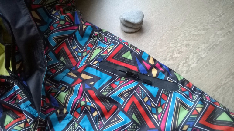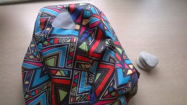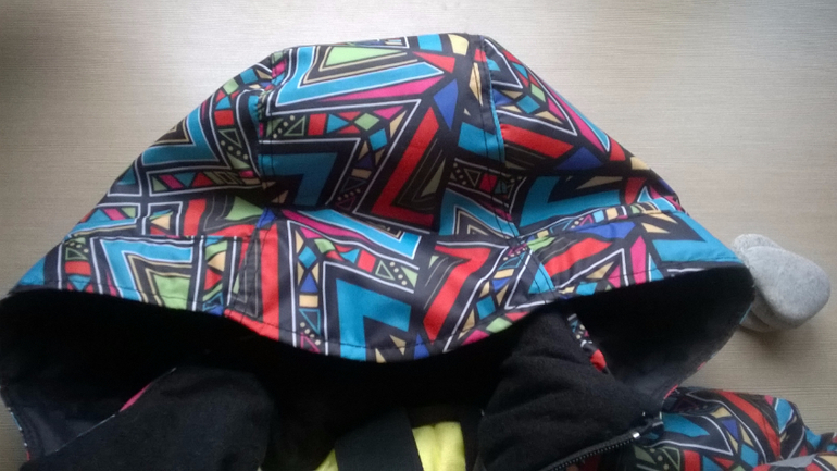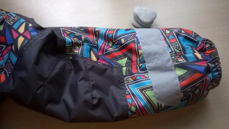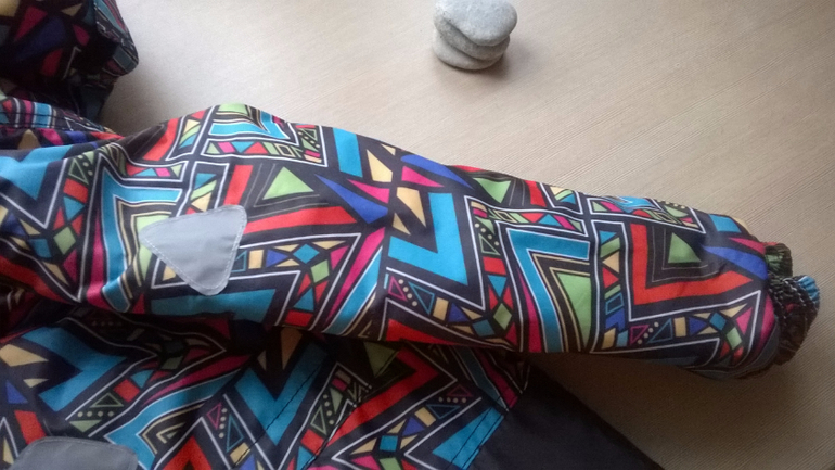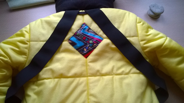 используемые материалы: мембрана графичная и яркая ( 2 метра - остался небольшой кусочек), мембрана черная, каризма желтая и черная, подкладочная фольгированная, молнии витые водонепроницаемые на карманах , центральная витая обычная, резинка черная и черная с латексными прожилками на низки штанин, лента велкро широкая, светоотражайка лента, стопора и концевики, нитки черные и желтые, утеплитель альполюкс 200... извела остаток.