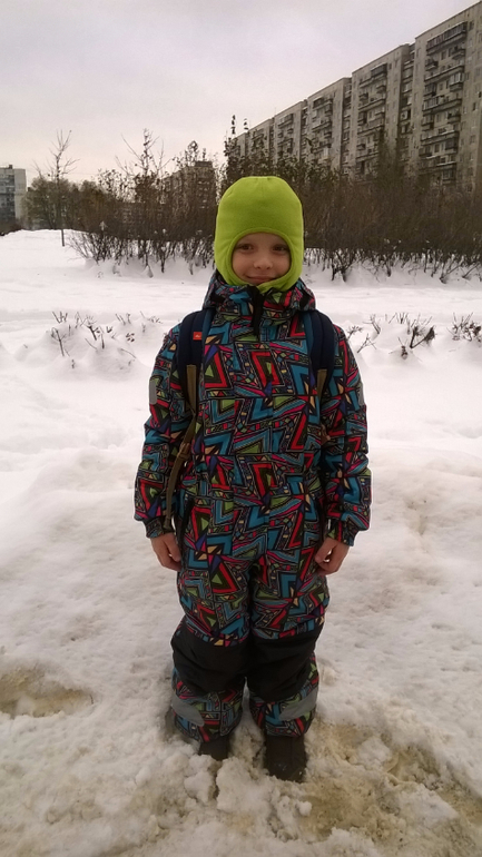 кратко Питер завалило снегом, мы гуляем ... решено было ребенку первоклашке завести таки комбез, да да слитный , ростовка 128, очень даже удобный вариант...