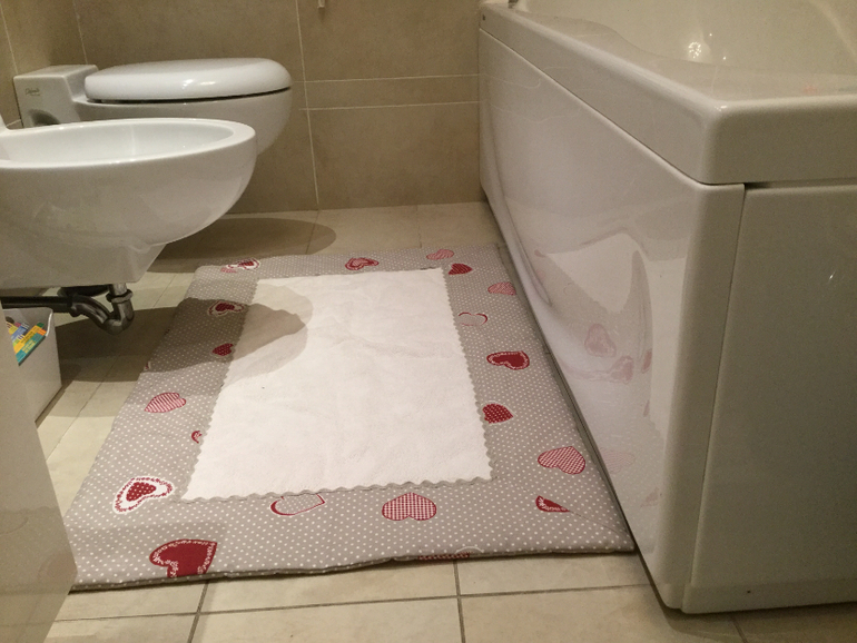 Такое все уютное) Вы наверно очень аккуратные, у нас "потоп", если кто то ванну принимает))), жалко бы мне было такой красивый коврик стелить