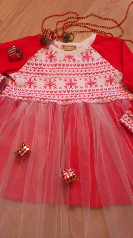 Платье с фатином мягким Выкройка своя размер 98-104 Ткань интерлок на отделке горла рибана