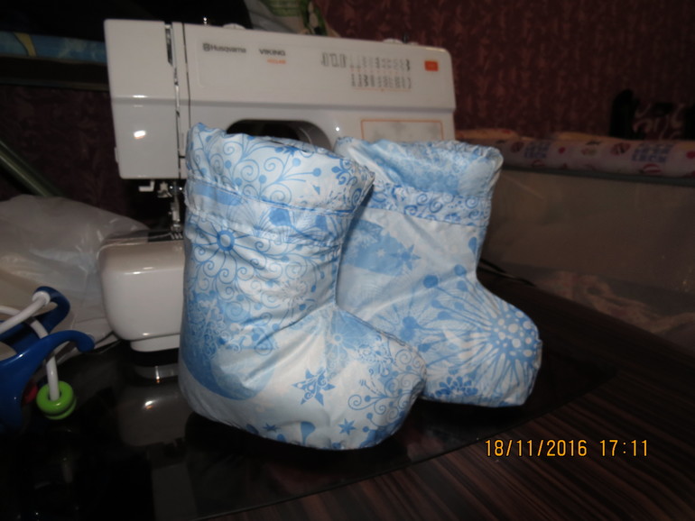 Ну и в комплект сапожки по выкройке отто 6-2014 мод.7. Брала самый большой размер, опять таки из-за утеплителя. Внутри опять фольгированный подклад. Утеплитель Сиберия 100, но в 3 слоя)) Называется из того что наковыряла)
