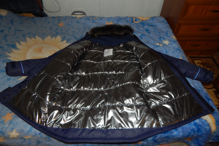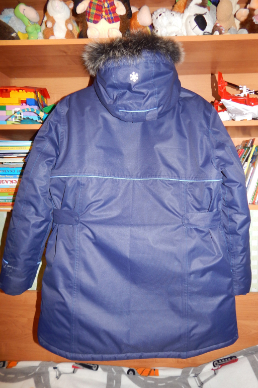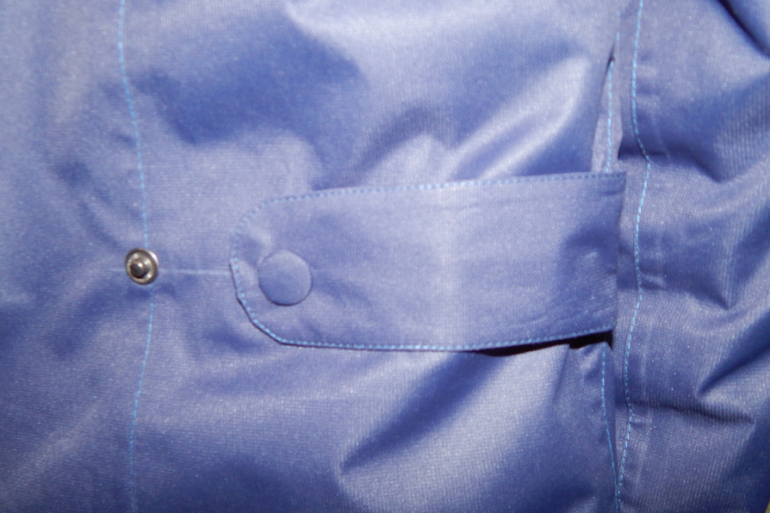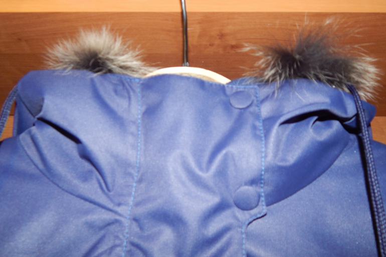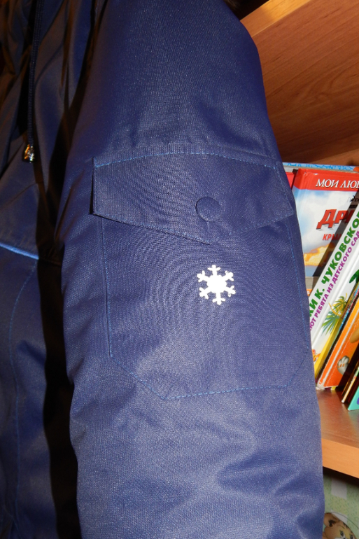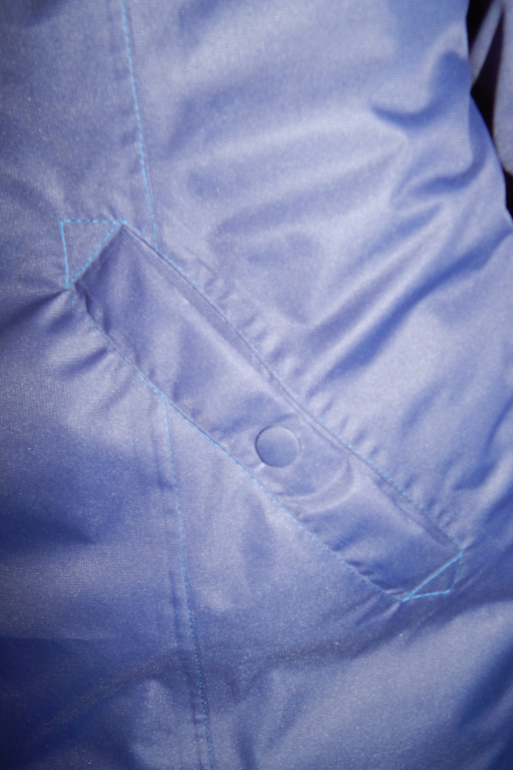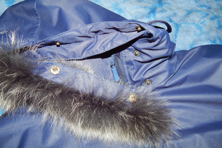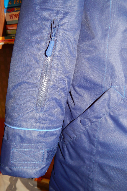Материалы: темно-синяя мембрана + альполюкс 300 по телу, 200 рукава, 100 кап. Фольгированный подклад везде, кроме капа, в капе и в карманах каризма. Синий сво-кант, пара термоклеевых сво-снежинок, кнопки 12,5 мм, обтянутые мембраной. Двухзамковая молния. Шнурок плоский. Два концевика метталлических серебристого цвета. Синяя велькро.