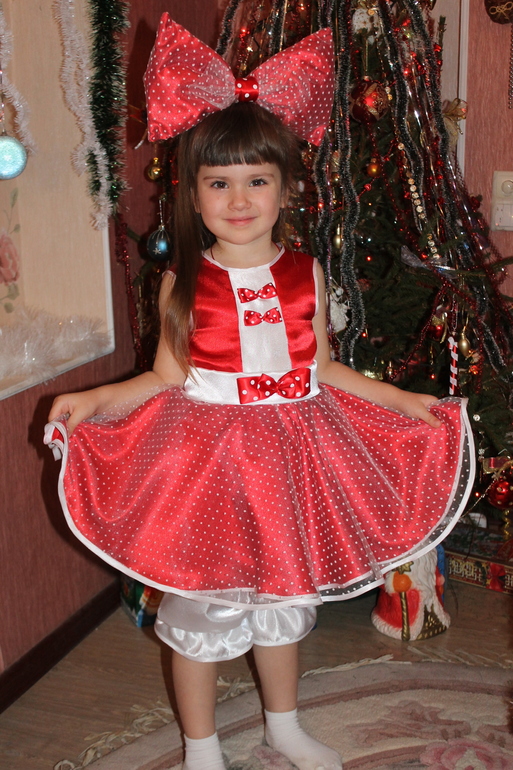 Шьем детямВот такой сшился костюм для дочи,использовала креп сатин двух цветов, фатин жёсткий и полужесткий,косая бейка,лента красная и молния