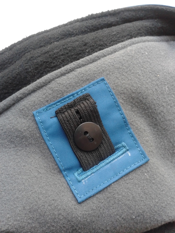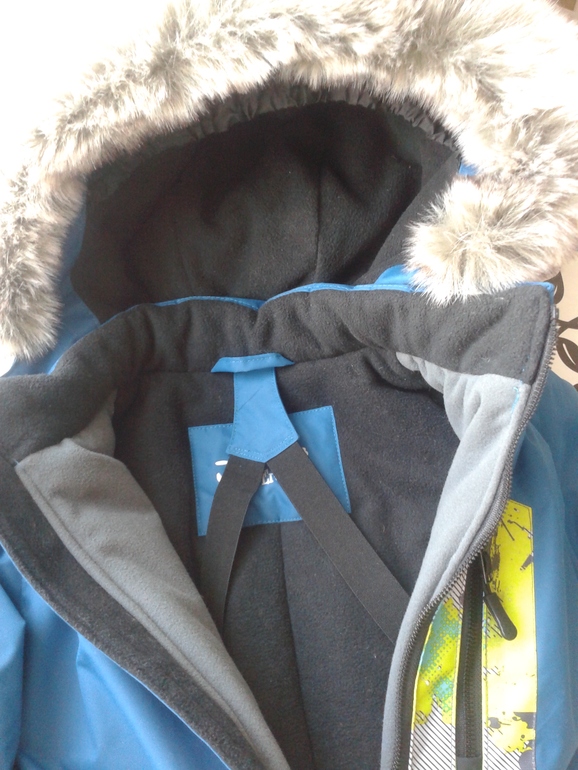 Мех съемный на молнии, внутр капа шторка от сдувания. Утяжки по краю нет. Лямки для ношения в пемещениях все таки сделала, пару раз пригодились уже.