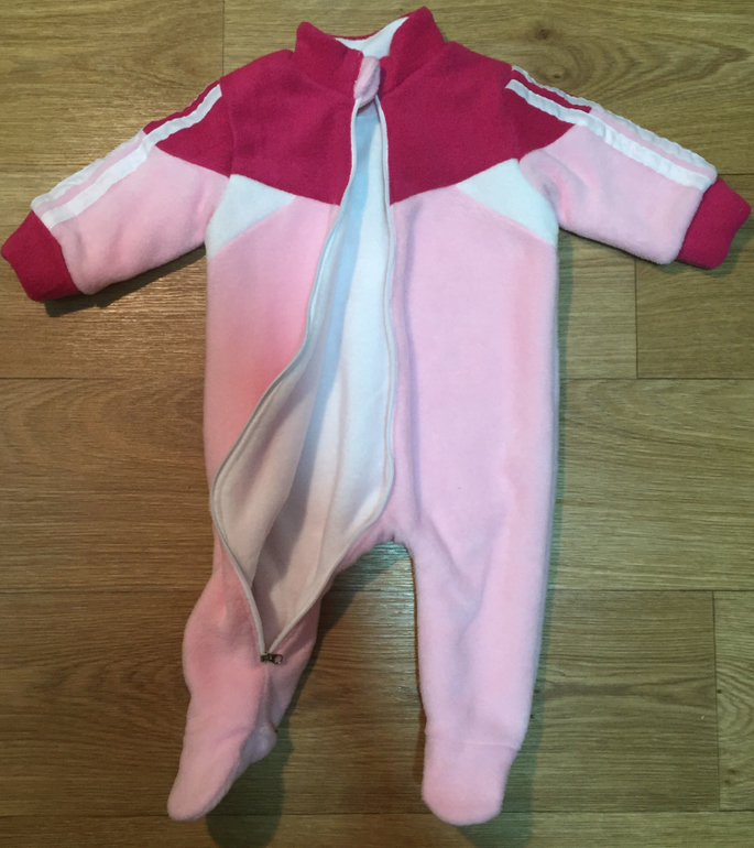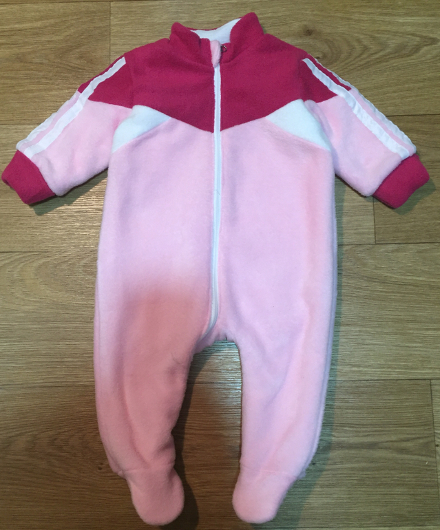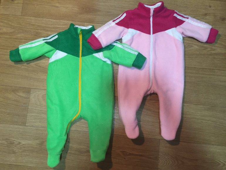 Костюмчики Абибас 68. Заказали для девочки, я пошила второй для будующего племянника. Два слоя флиса, молния, готовые лампасы. Рукавчики заворачиваются чтоб спрятать ручку.