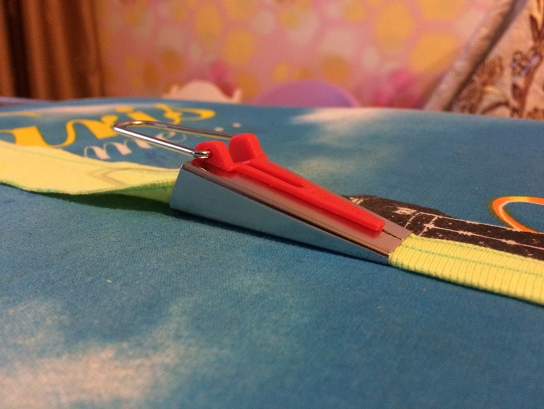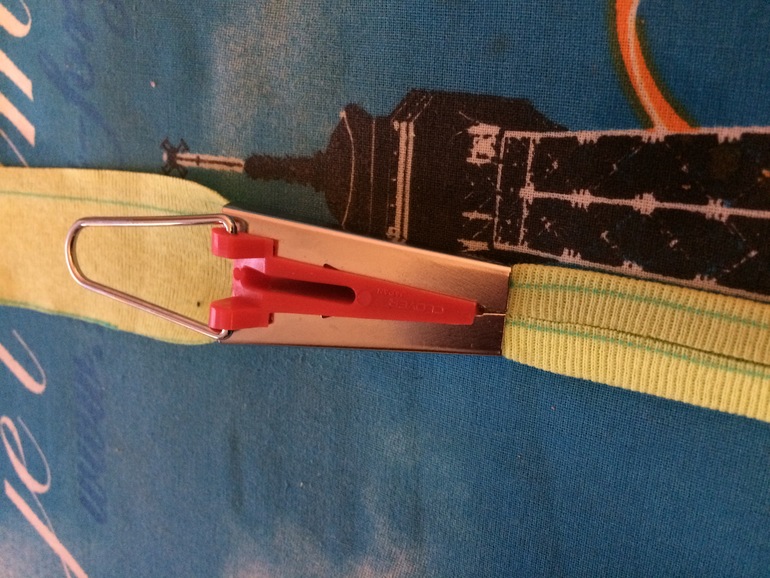 Очень прикольно обрабатывать край бейкой в три сложения и двойной иглой, одну сторону я блокирую кусочком картона. Риббана у меня только в широкий (2.5 см на выходе ) пролазит.