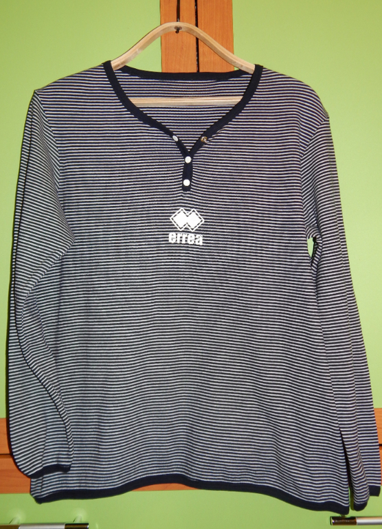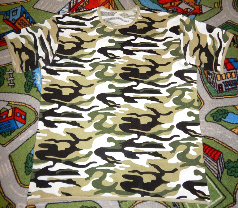 Ну и еще Димону сшила парочку футболок на повседневку. Кулирка 100 % х/б. С мужчинскими выкройками у меня (как и у многих) совсем беда, поэтому разрезана старая футболка, пришедшая в негодность. Мне кажется, что относительно нормально село.