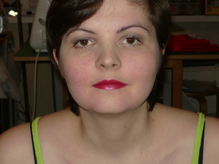 я бы розовый холодный такой интенсивности носили или сирень. мне было бы хорошо. именно холодный оттенок, а тут теплый. не мое. увы.