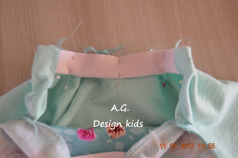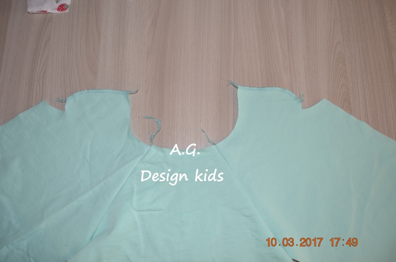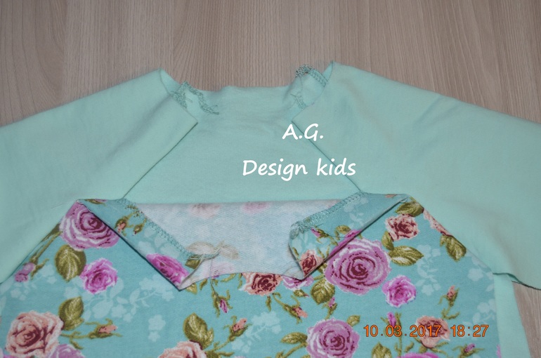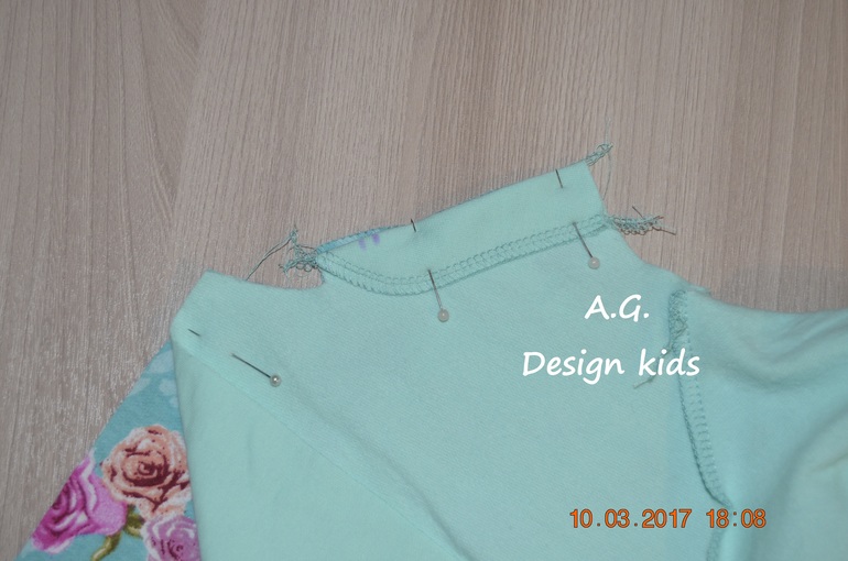 Планки на рукавах также загибаем на лицо, прикалываем обтачку и пришиваем на оверлоке.Должно получится так: