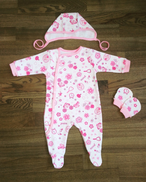Слип (выкройку полностью переделывала), царапки и чепчик (оттобре 5/2006 модель 4) из интерлока.