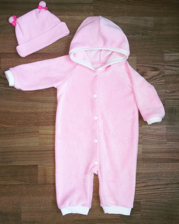Комбинезон (оттобре 4/2014 модель 7) из велюра и шапочка (оттобре 1/2012 модель 6) из ластика.