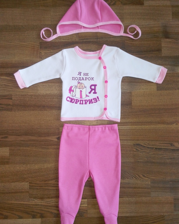 Распашонка (выкройку переделывала), ползунки (уменьшала ширину из оттобре 4/2006) и чепчик из интерлока.