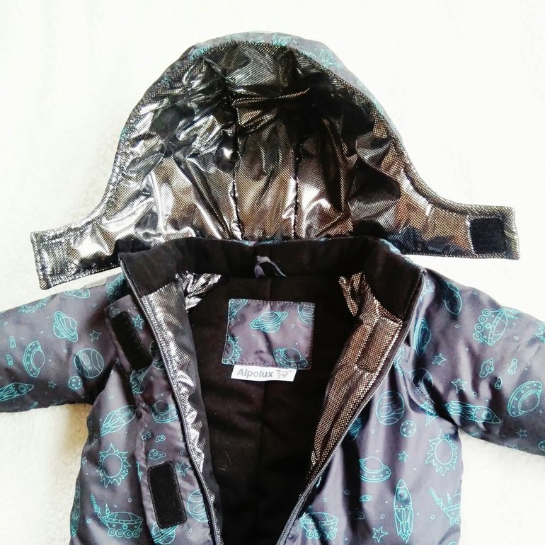 Мой первый комбез-сшит для сыночка. курточная 240Т PONGEE WR PU MILKY,утеплитель alpolux 200гр в тушке и 150 гр рукава и кап,на подкладе в спинке каризма, остальное фольгированный подклад.