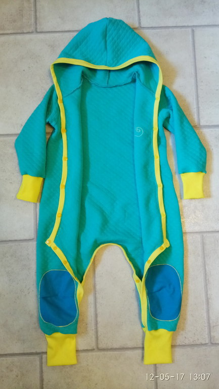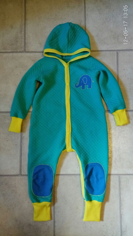 Шьем детямРешила я сшить комбез из капитония, в слинге сидеть, да прохладным летом гулять. Очень вовремя попался здесь пост про штаны из капитония, после него придумалось усилить коленки. Ну и в поддержку аппликацию сделала. Мод. 8 ottobre 1/2015, размер взяла 80 на рост 79. Но! Оказался нереально большим! Померила на мальчика ростом 92, даже немного запас есть. Так что это 92/98. Ну и фото