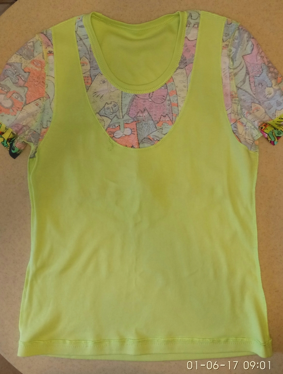 Но твоя идея мне даже больше нравится, что внутренняя часть как майка, а не прямоугольник. Тогда даже если чуть-чуть растянется вырез, за счёт пришитого верха будет хорошо держаться.