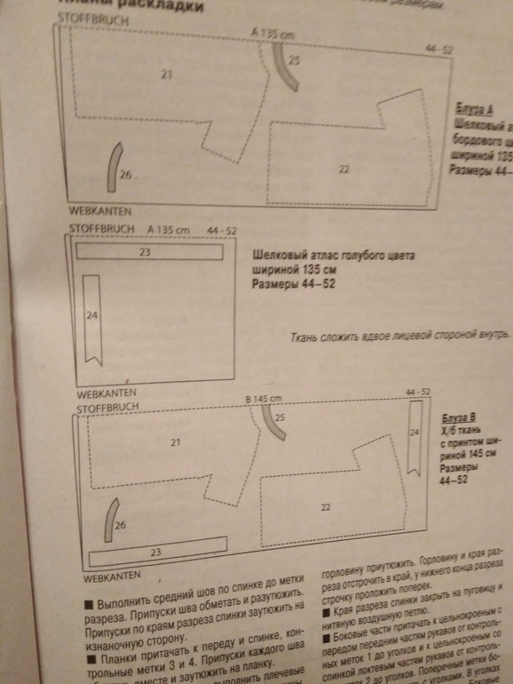 Там должен быть рисунок с раскладкой выкроек на ткани, он на фото не попал.
