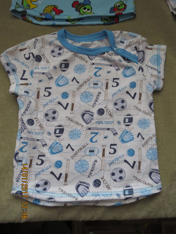 Это тоже на р.74. Из 1-го метра ткани. Кулирка 100% хб. Штаны у меня по одной единственной выкройке (см. выше). Футболки тут по выкройке 1-2016 мод.3, там свитшот с длинным рукавом.