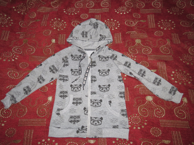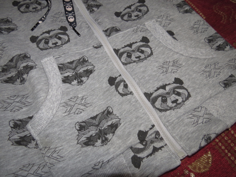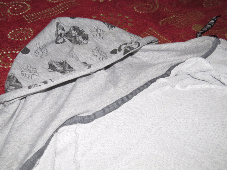 Прикупила я себе на распродаже кусок (1м) футера 3-х нитки петля с витрины (с пятнами по краю полотна и швом вдоль всей ширины на расстоянии 15-20см от края).