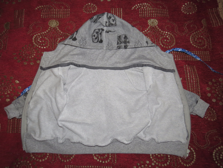 Это кофта младшенькому, на рост 74, выкройка с просторов интернета. Из изменений сделала замок посередине. Все тоже самое, только для красоты отстрочила все швы на распошивалке.