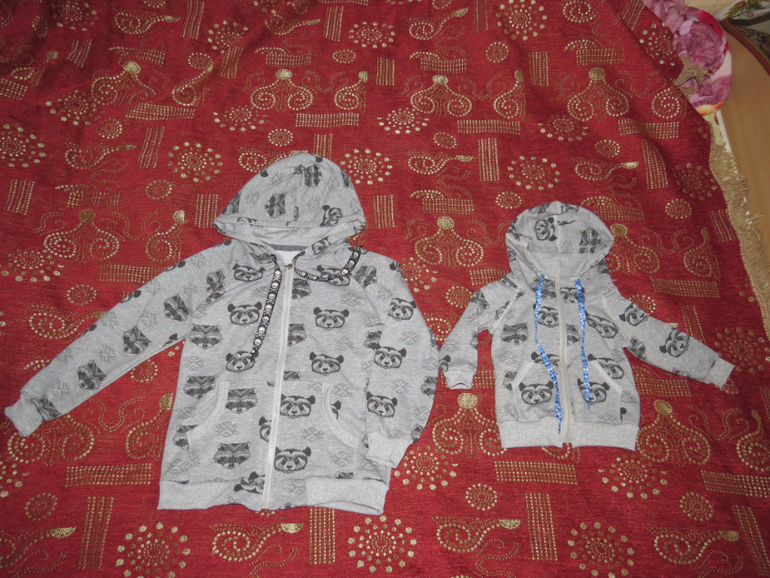И еще один комплектик. Этот из футера 2-х нитки с начесом. Штаны по выкройке выше. Кофта по той же выйкройке, что и с замком выше. Чтобы хоть как то разбавить костюм прилепила трансфер) Горловина у кофты широкая(((( а в кофте с замком поуже получилась, видимо кроила я как ко по разному)))