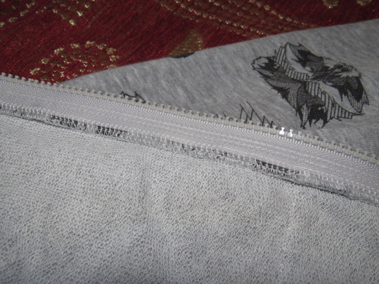 Так как на подборта ткани не хватило, сидела изгалялась, как сделать красиво..... Киперка у меня есть, но она широкая. И закрыть изнутри киперкой красиво не получается, все торчит. В общем просто пришила молнию на оверлове, получается цепляет только одной иглой, но хоть смотрится культурно) потом на машинке отстрочила как обычно.