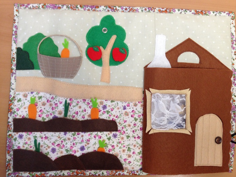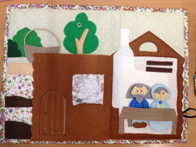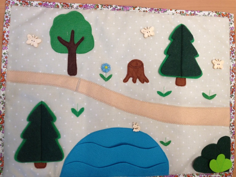 Планшет или коврик, как там его назвать, все же дошила. И немного съёмных элементов. Осталась Маша-внучка, мышка, лягушка, курица с яйцамм, рыбки в озеро и пуговицы-цветочки пришить (с али дождаться))