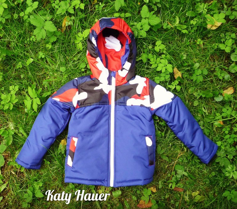 За основу брала куртку 12 из оттобре 1/2013. Из изменений, двухшовный капюшон, прорезной карман с листочкой вместо накладного и кокетки. Объёмы не изменяла. Поставила утеплитель синтепон. Скажу так: выкройка узковата, даже на моего худыша, только для ветровок, может с тонким флисом.