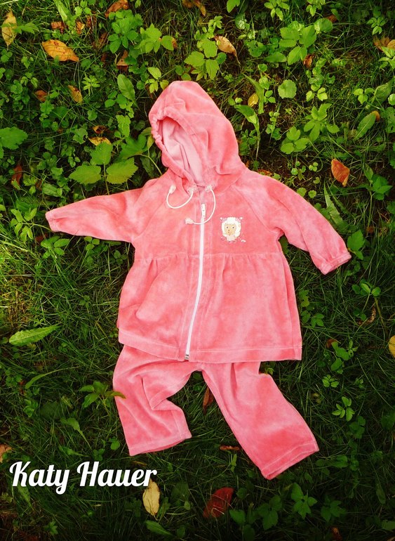 Давно заказала и долго я смотрела на эту ткань, казалась она мне какой-то поросячей😀🐷 . Была-небыла, пошила, а получилось по-моему не плохо. И цвет оказался в изделии лососевый. На детку блондинку мою хорошо. Термотрансфер на велюре как-то странно выглядит, к верхушкам ворса приклеился и под ним ветер гуляет, надеюсь не отвалится🤔