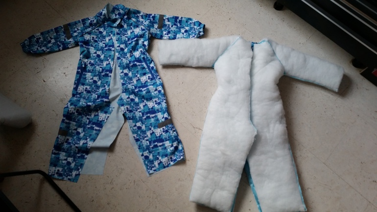 Я срезала слой в 200 и остался в этом комбезе только 1 слой 100 альполюкса. И дошила таки его.