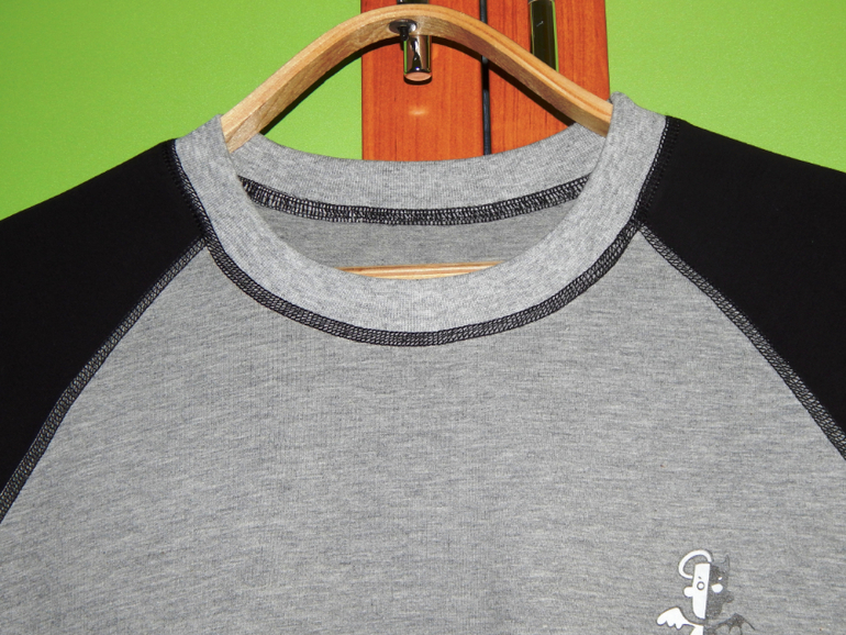 Второй лонг с рукавом реглан. Сделала двухцветным нейтральных тонов, на груди термотрансфер. Выкройка: тык. Тоже мною не идентифицированная откуда... Ткань кулирка с лайкрой, на горловине кашкорсе. Размер L, припуски тоже не стала делать. В следующий раз надо будет взять М. Село не плохо. УЖЕ НОСИЛ, не чёрное!!! Моя доволен.