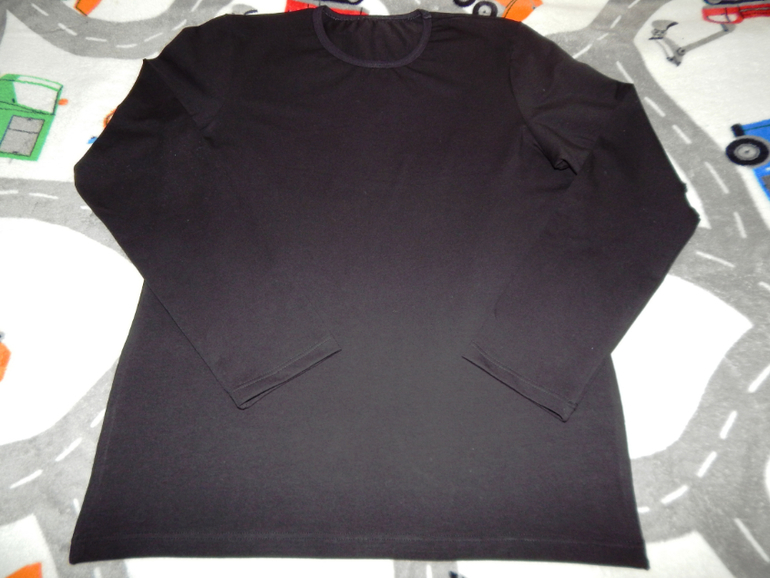 Лонг в традиционном Димоновском стиле. Черный, без всего. У него таких много, но уже все не первой свежести. Кулирка с лайкрой, плотная. На окантовке рибана с лайкрой. Выкройку взяла тут. Каких либо опознавательных признаков для идентификации первоисточника выкройки я не нашла. На обхват груди 105 раскроила размер 52, припуски на швы делать не стала, получилось бы широко.