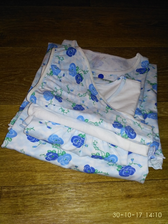 Давно хотела себе ночнушку в деревенском стиле, простую, не гламурную, с рюшками. И вот желание воплотилось в жизнь! Ткани было всего метр, кулирка хб, и та с браком в некоторых местах. Но я умудрилась из этого "богатства" сшить две ночнушки -для себя и для дочки (благо у меня размер xs 😉).