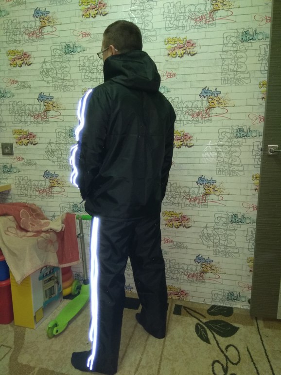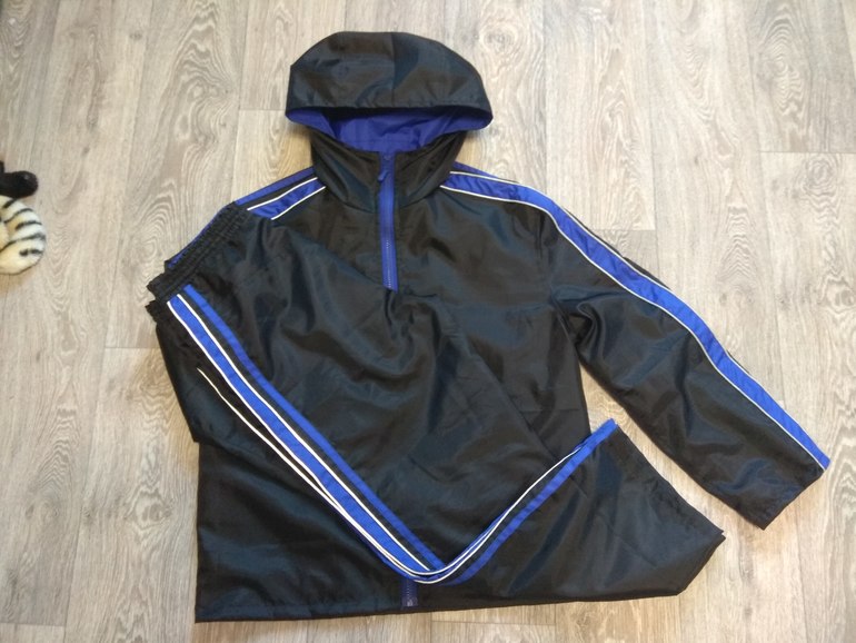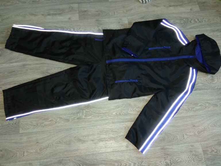 Ткань какая то плащевка из местного магазина, на ощупь плотная, с изнанки какое то напыление. На подкладке обрезки дюспо синей и синяя сетка для спортивной одежды. Карманы в рамку на молнии. Штаны выкройка снята с любимых, но заношенных. Ветровка выкройка из бурды, номер и год не знаю, прикреплю фото( там трикотажная кофта)