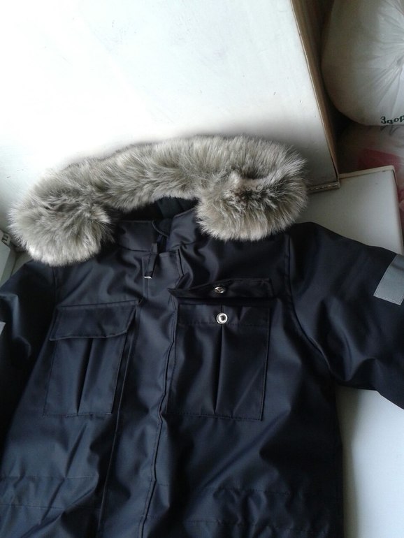 Меховая опушка съемная, резинка по талии регулируется.