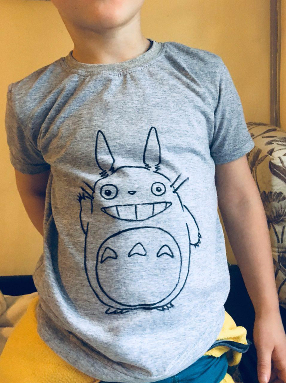 4. Футболка с тоторо для Савы. Размер 110. Рисунок маркерами по текстилю
