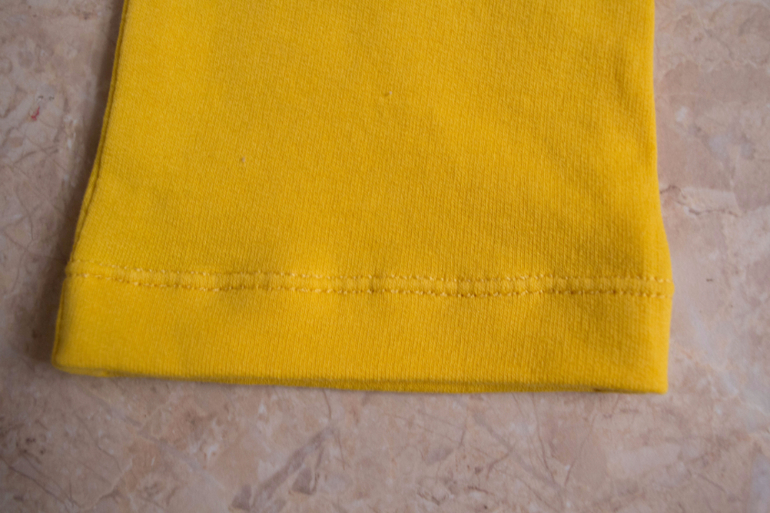 Горловину закрывала бейкой, чтоб выглядело аккуратнее. Отстрачивала двойной иглой, но после отстрочки горловина, почему-то начала волнить, хотя ткань вроде не тянула.