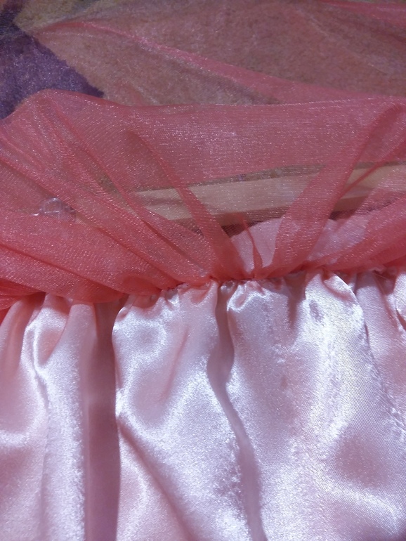 Для пошива использовался еврофатин , на подьюбнике атлас. Все слои юбки сшиты из прямоугольников, присборенных на размер бедер и посаженных на широкую резинку.