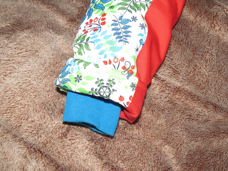 На штанах тоже хотела сделать манжеты, но поскольку толи из-за резинки, толи не знаю еще из-за чего получались волнушки, на ногах сделала отвороты + снегозащитную юбку.
