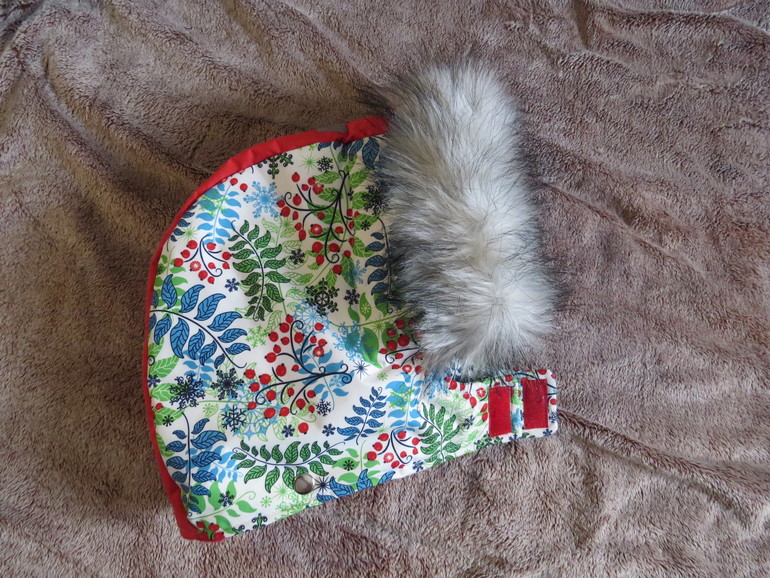 Капюшон отстегивается на кнопках. Забыла встававить СВО кант и надо было сделать мех длиннее на см 2 с каждой стороны.