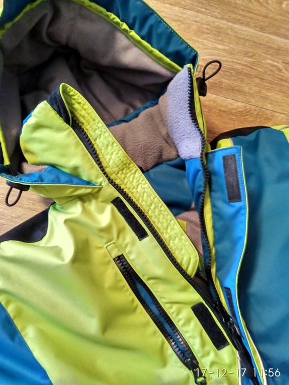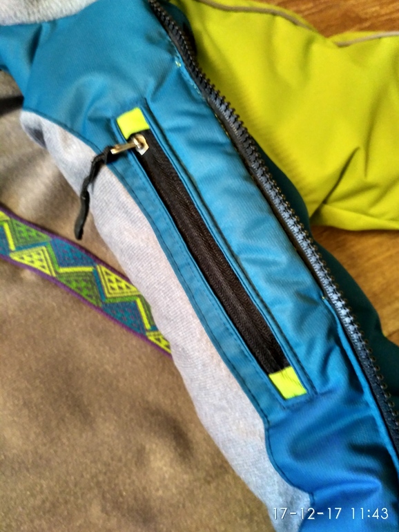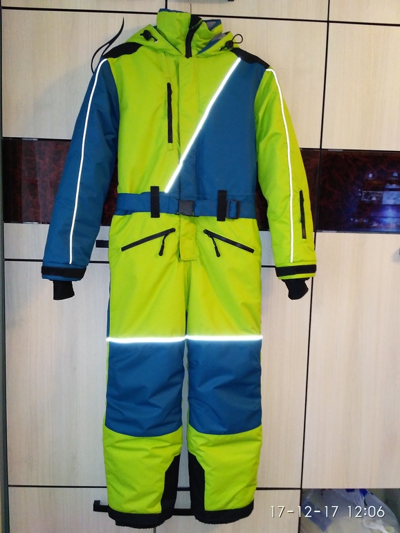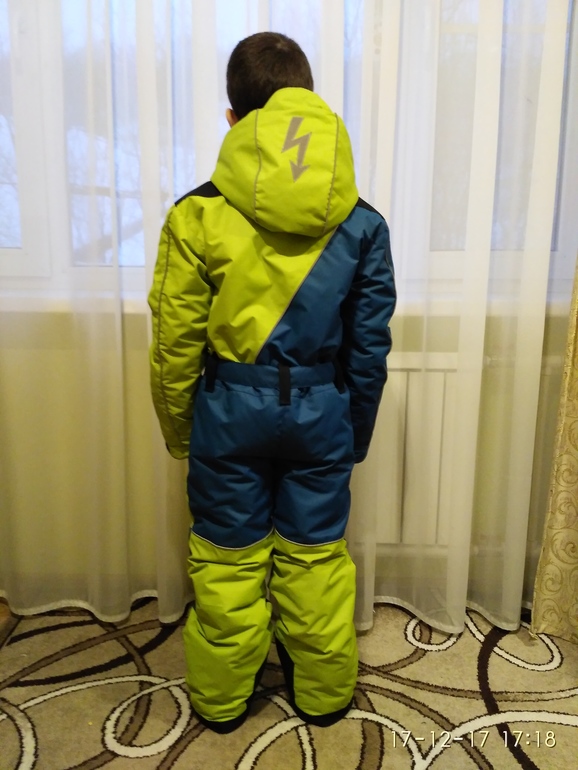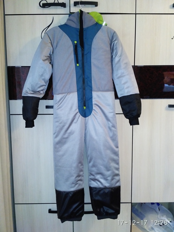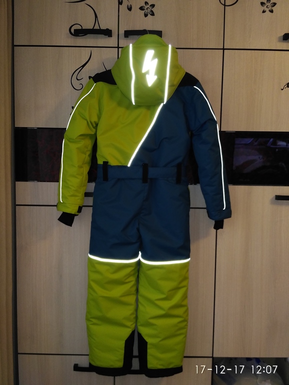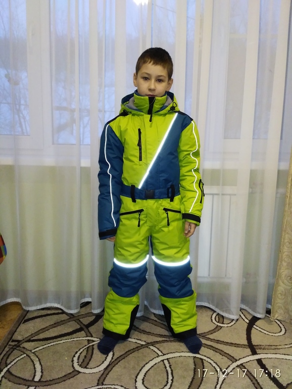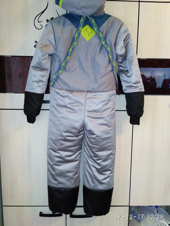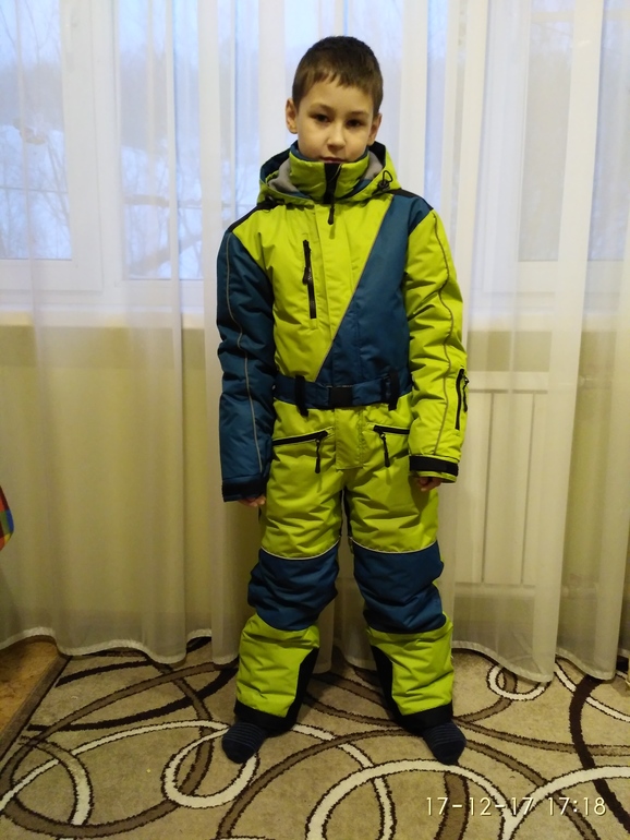 Шила очень долго, постоянно натыкалась на всякие подводные камни, начиная с того, что с самого начала машинка пропускала строчки (оказалось расшатался элемент, который держит лапку, и он у меня просто вывалился, прикрутила на место-все пошло), потом было много новых элементов, ветрозащитные манжеты на руках и ногах, да и вообще сам комбинезон первый в моей практике. Я уже молчу о том, что педаль от машинки давно сломалась и я шью кнопкой на корпусе, привыкла конечно без педали, но в некоторых моментах приходится пальцы так растопыривать, что напоминаю себе пианистку, иногда палец заклинивает... Дальше- не в той последовательности собирала комбез и из-за этого были сложности со вшиванием центральной молнии, трудно было подлезть к основанию, также не могла подобрать лапку для пришивания.... В общем процесс шитья так затянулся, что мне казалось, что я никогда его не закончу и буду шить вечно, пока не кончится зима. Дошила! Следующий день ходила в ступоре, опустошенная и выжатая как лимон. Но когда сын померил и сказал: "Спасибо, мамочка, круто! Теперь я могу ходить без манишки!!", я пришла в себя и теперь готова к новым приключениям)))