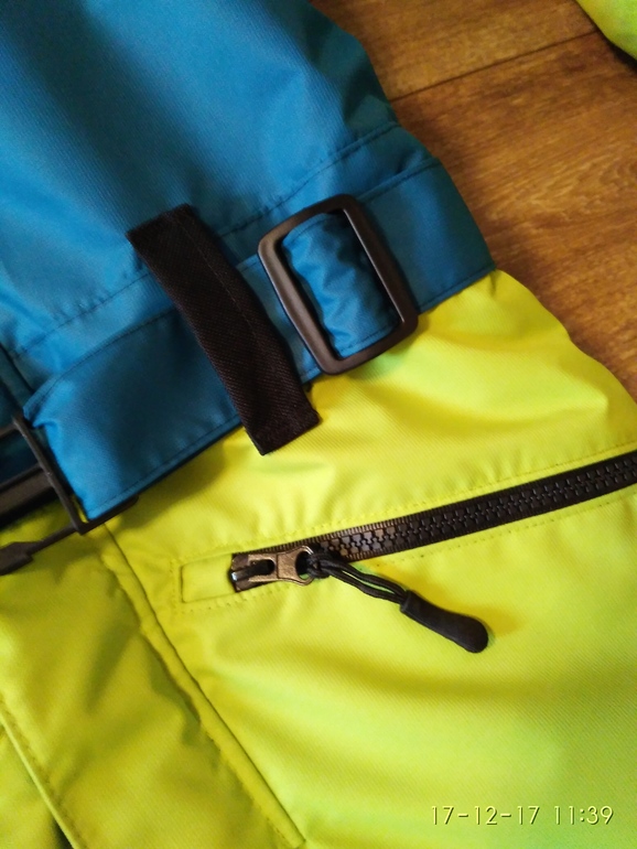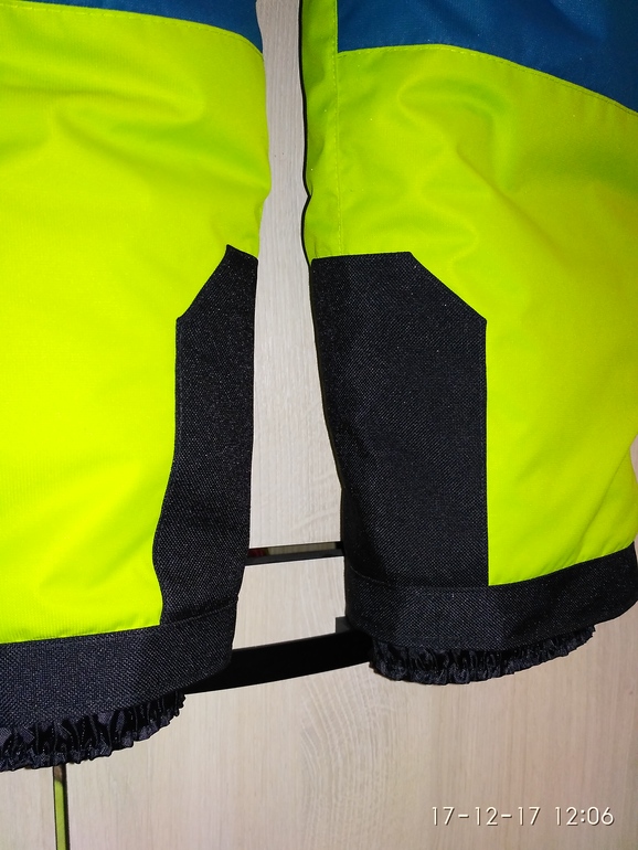 На штанах выпуклые колени, низ можно подвернуть, там кордура изнутри, но и так очень хорошо. Внутри снегозащитный манжет, юбочка из черного оксфорда, латексная резинка.