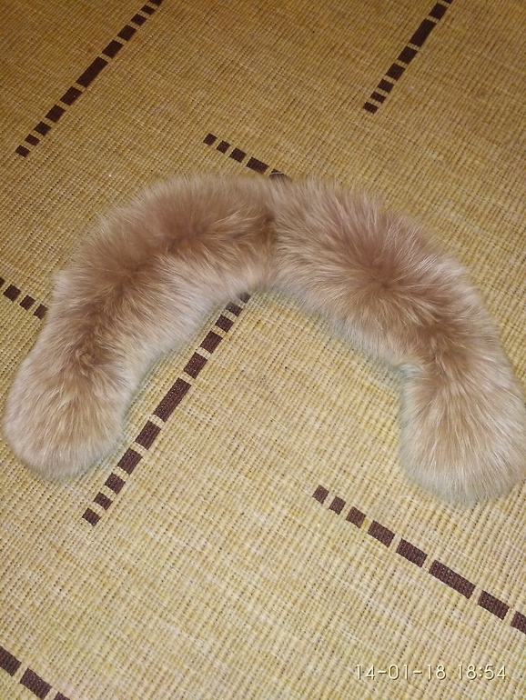 Когда-то у меня было пальто, которое уже давно выкинуто. Но от него остался шикарный широкий воротник и два меховых манжета из натурального песца (знала, что оставляла). Опушку делала впервые, мне очень понравилось ее изготовление и как она в итоге смотрится. Мех очень плотный и богатый. Цвет бежевый с розовинкой. А вообще началось все с "шапки за вечер", я ее так теперь называю.