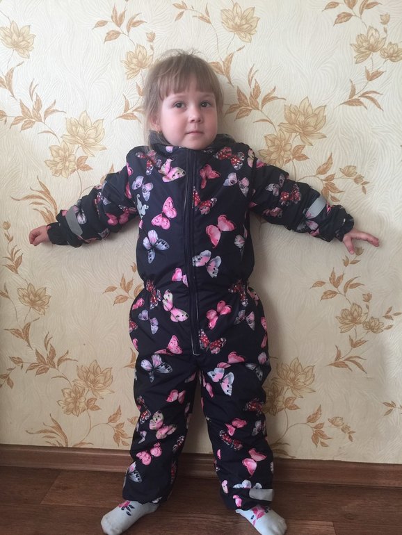 Тут всплыла ткань - новая мембрана от Пупкин с бабочками. Дай думаю, опробую выкройку на комбинезоне для кумовой дочки. А сына пока в старую куртку старшего сына приодела.