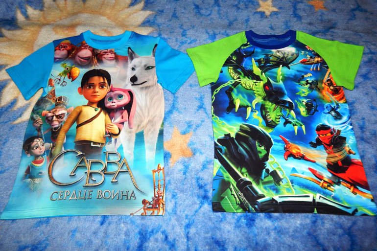 Футболки - кулир, полочка сублимация на кулмаксе. Мне он понравился больше сендвича, нет такого количества затяжек при носке. Гуська очень любит мультик Савва сердце воина, был в восторге, скакал в этой футболке долго, мечом размахивал, чуть люстры не посшибал :) Футболка с втачным рукавом - выкройка та же, реглан по Отто - 2010/3, модель 12.