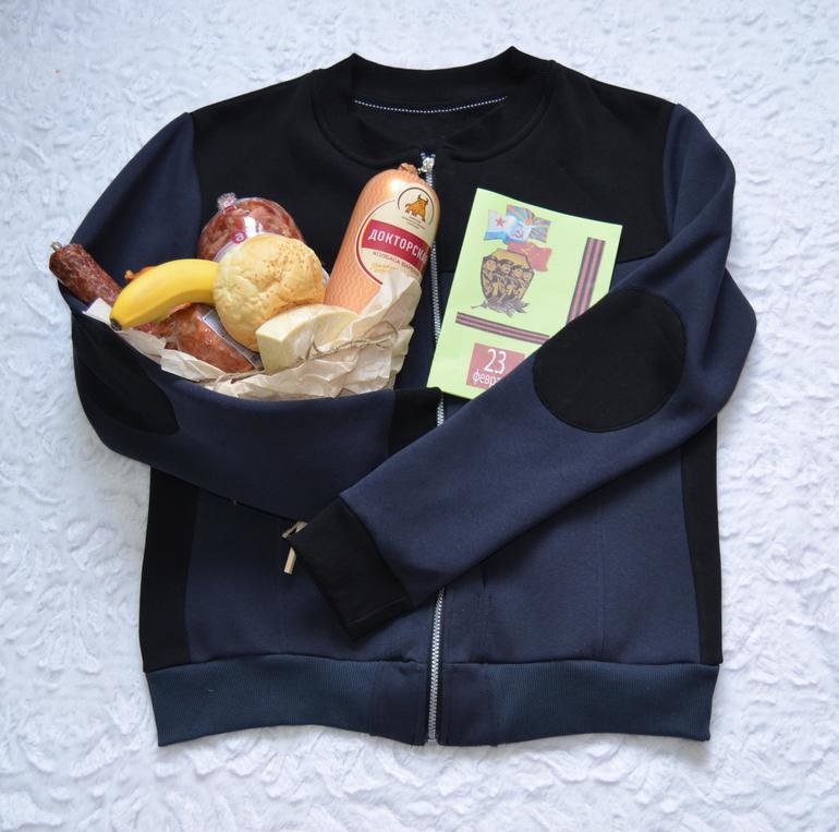 А тут так совпало просто, что выкроила наконец время сшить ему вещь, которую давно хотела и которая ему была нужна, ну и приурочила ее вручение к 23. И до кучи еще колбасный букетик (собрала туда только то, что он любит)