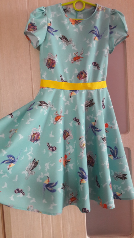 очень красивое платье! сочетание с желтым поясом отличное, и дочке очень идёт.