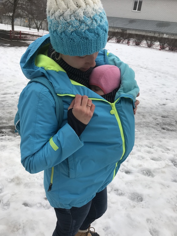 А я зимнюю куртку ношу со слингом 😄 у нас чето не особо то и жарко